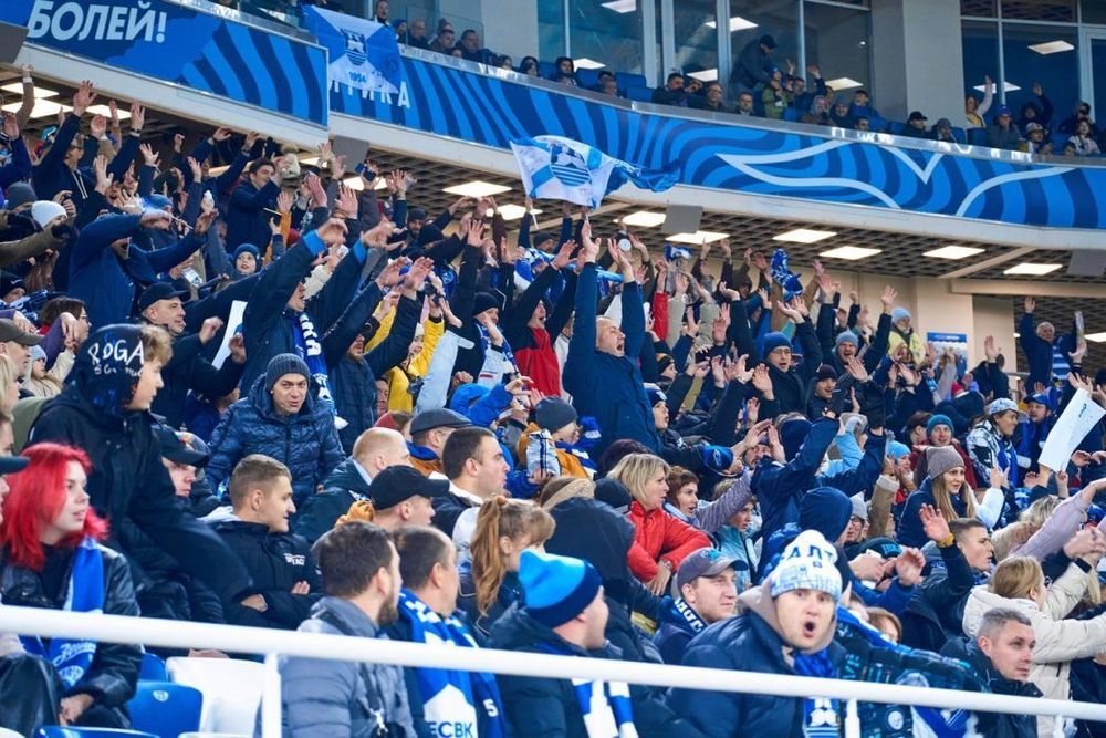 РОСТЕХ АРЕНА вновь открывает поединок зрелищным световым шоу: в кромешной темноте болельщики включили фонарики и встретили игроков знакомым каждому «балтийцу» зарядом «вперед за Калининград». На трибунах сегодня 16 тысяч человек.