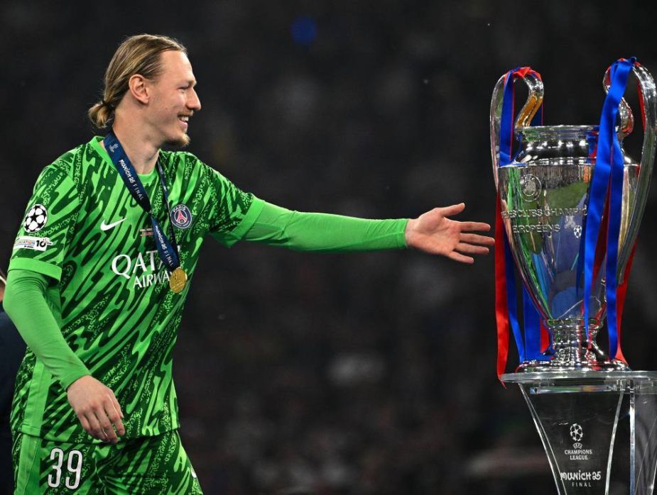 Голкипер сборной России и «ПСЖ» Матвей Сафонов привез кубок Лиги чемпионов на сбор национальной команды.