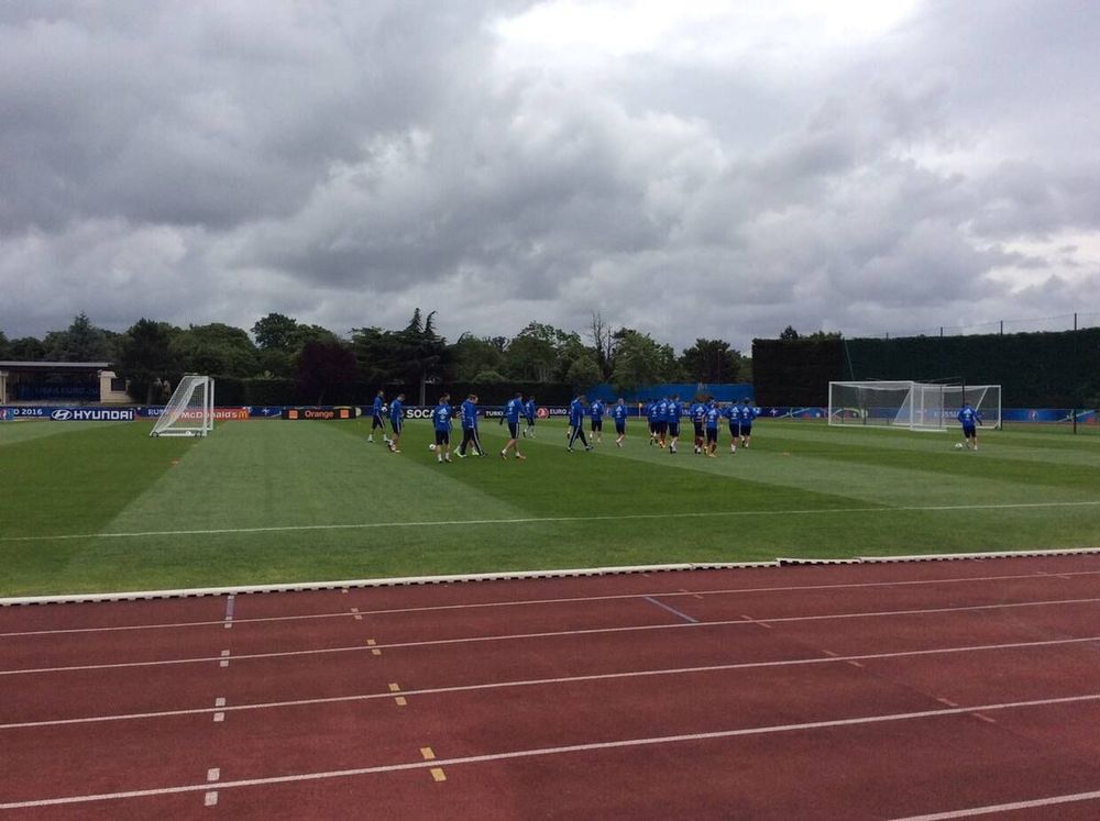 В понедельник состоялась вторая тренировка подопечных Леонида Слуцкого после возвращения из Марселя, сообщает специальный корреспондент «Спорта День за Днем» Александр МАКАРОВ. Накануне на пригороды Парижа обрушился сильнейший ливень, накрапывал дождь и сегодня утром, однако к разгару занятия футболистов на стадионе «Омниспорт» выглянуло солнце. Не исключено, что в столь же переменчивых условиях пройдет и матч со Словакией в пригороде Лилля — Вильнев-д'Аск. На среду там обещают схожую с парижской погоду.
