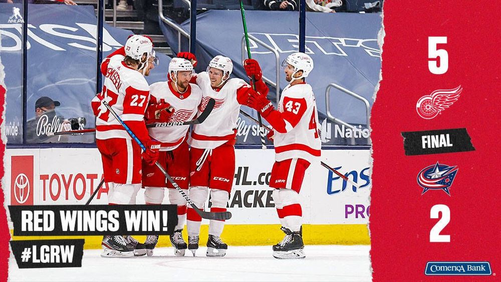 Владислав Наместников стал героем матча регулярного чемпионата НХЛ, в котором «Детройт» на чужом льду переиграл «Коламбус» со счетом 5:2. Он забросил две шайбы, и обе в пустые ворота.